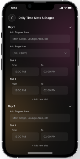 See a slot you like? hit “Request to Perform” (or “Invite Artist”) with one tap. Messages, confirmations, and secure payments all happen in-app - making showtime seamless and hassle-free.